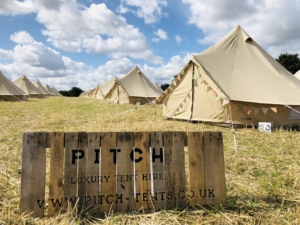 We have teamed up with local Glamping company “Pitch” who can provide you with a choice of bell tents at different levels of luxury. The Glamping village will be part of our normal camping field, but glamping has the added bonus of you not needing to fill your car with camping gear and not having to erect the tent!